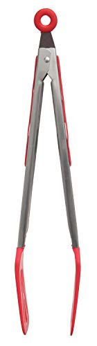 Spaceshoop - ملقط طعام سيليكون بمقبض ستانلس ستيل مع ضمان لمدة عام واحد، احمر فضي