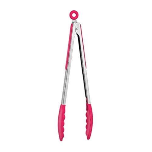 Generic - ضمان لمدة عام واحد_ ملاقط سيليكون للمطبخ والطبخ وتقديم السلطة والشواء بمقبض من الستانلس ستيل بلون احمر وردي بجودة عالية