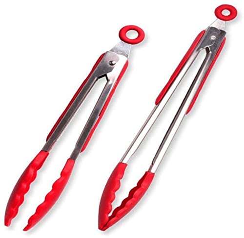 Generic - طقم ملاقط من الستانلس ستيل مكون من قطعتين - طرف سيليكون لحماية اواني الطهي والامساك بالطعام بقوة - ناعمة ومتينة ومقاومة للحرارة والجراثيم 92525