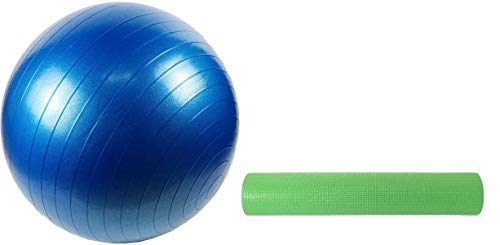 generic - كرة يوجا وصالة الالعاب الرياضية، مقاس 55 سم، ازرق، SP68-4، مع سجادة يوجا من بلاستيك PVC، اخضر، Mf116-1، ضمان لمدة عام واحد
