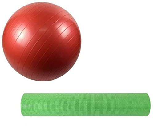 generic - كرة يوجا وصالة الالعاب الرياضية، مقاس 65 سم، احمر، SP69-4، مع سجادة يوجا من بلاستيك PVC، اخضر، Mf116-19144، ضمان لمدة عام واحد