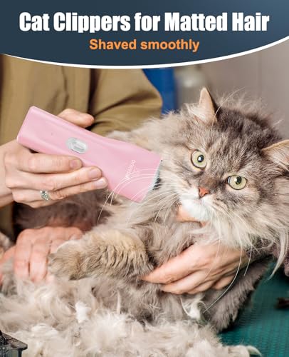 oneisall - ماكينة حلاقة شعر القطط غير اللامعة من ون از اوول، ماكينة حلاقة شعر الحيوانات الأليفة للقطط، ماكينة حلاقة لاسلكية لقص شعر القطط غير اللامع للشعر الطويل (وردي)