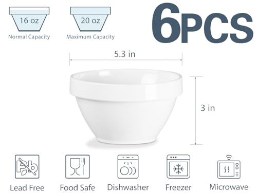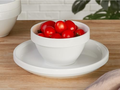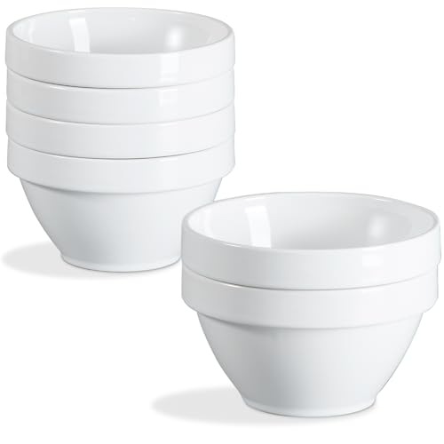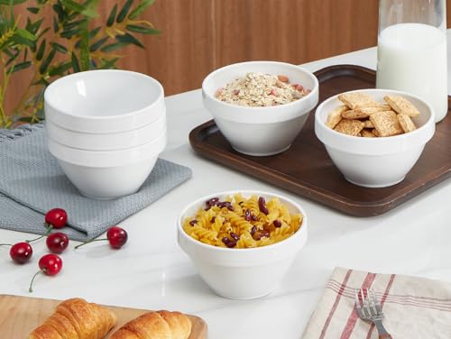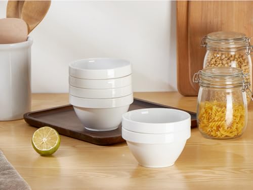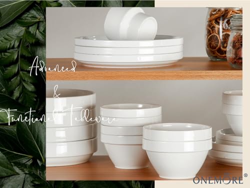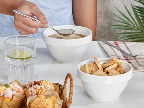 ONEMORE - طقم أوعية حبوب سيراميك سعة 590 مل من ون مور 6 عميقة قابلة للتكديس للمطبخ لتقديم دقيق الشوفان والسلطة والمكرونة والحلويات آمنة للاستخدام في الميكروويف وغسالة الصحون مقاس 13.5 سم لون أبيض