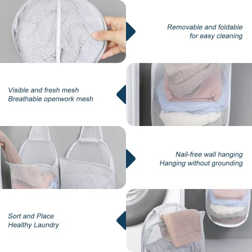 OneNine - أكياس سبت غسيل معلقة من ون ناين، سبت غسيل شبكية جيدة التهوية مع خطافات ذاتية اللصق تثبت على الحائط، سبت ملابس متسخة قابلة للطي لغرفة الغسيل والخزانة والحمام والاستخدام أثناء السفر، قطعتان
