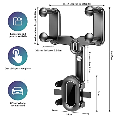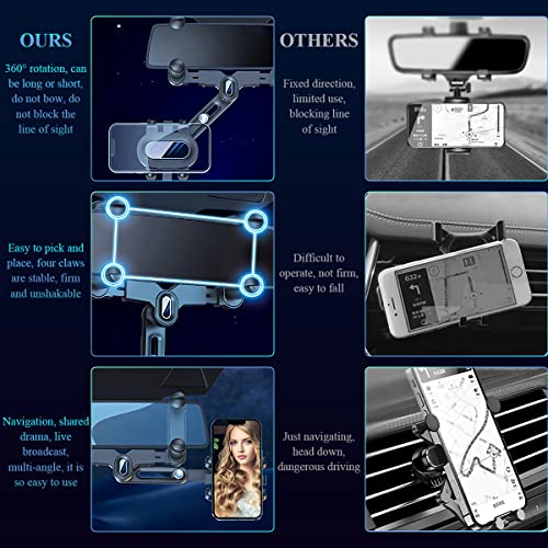 - 🚗【حامل موبايل للسيارة قابل للسحب وقابل للتعديل وقابل للدوران بزاوية 360 درجة】- يتميز الإصدار الجديد من حامل الموبايل لمراية الصالون المتعدد الوظائف بهيكل دوار 360 درجة، لتتمكّن من التبديل بين وضعيّ الشاشة الأفقي والعموديّ حسب رغبتك. يمكن سحب الذراع بمقدار 0-5.5 سم من دون حجب الرؤية. تصميم فائق المرونة يمنحك أفضل زاوية مشاهدة.