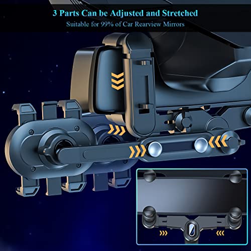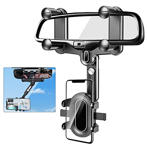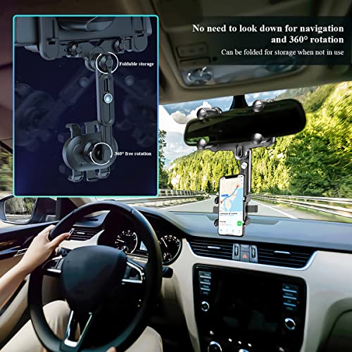 OneNine - حامل موبايل بقاعدة تثبيت لمراية صالون السيارة، حامل موبايل متطور قابل للسحب وللدوران 360 درجة لتشغيل نظام تحديد المواقع GPS، حامل موبايل لمراية صالون السيارة قابل للتعديل ومتعدد الوظائف من ون ناين