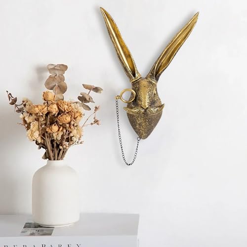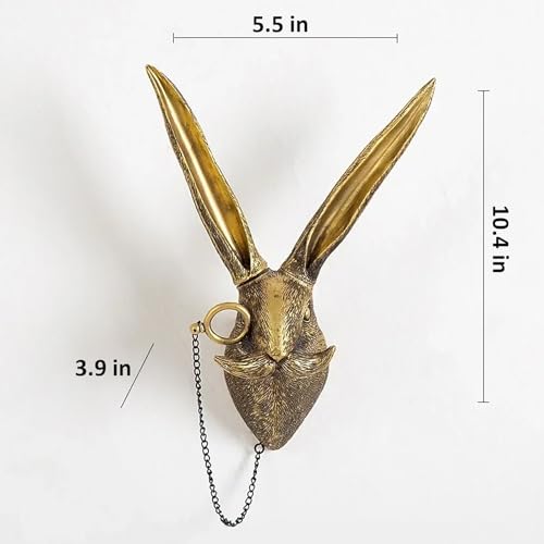 ONERWN - ديكور حائط من الراتنج النحاسي العتيق بتصميم رأس حيوان اونروان أرنب صناعي للتعليق على الحائط منحوتات بنمط حيوانات هدايا فنية لجدار المنزل
