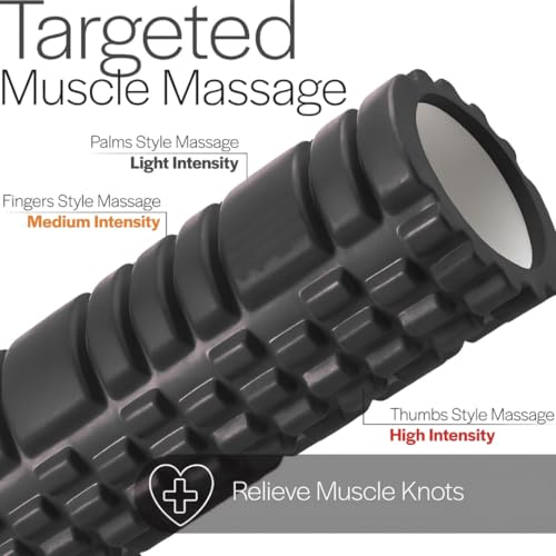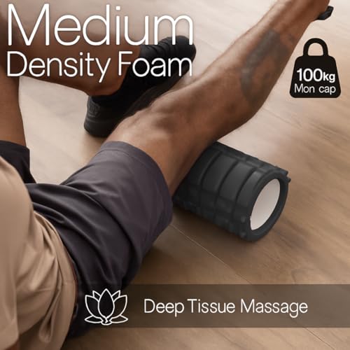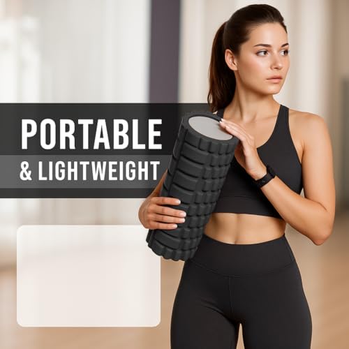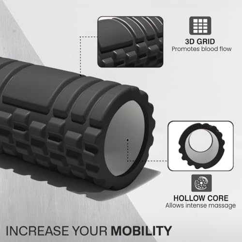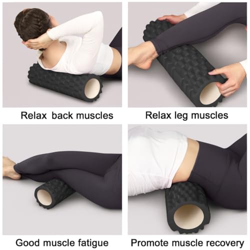 ONEX - بكرة فوم، أداة تدليك خفيفة الوزن لنقاط الضغط للعضلات، مثالية للتمارين الرياضية واليوجا والبيلاتس وجلسات الأنسجة العميقة وتمديد الظهر والرقبة والأرجل والذراعين من اونكس (لون أسود، 30 سم)