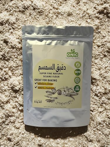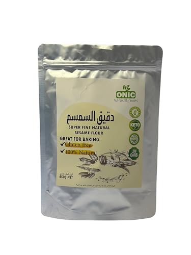 ONIC NATURALLY YOURS - دقيق سمسم طبيعي 100% وخالي من الغبار والشوائب من اونيك ناتشورالي يورز | بدون طعم | عالي البروتين وصديق للكيتو وخالي من الجلوتين | مثالي للخبز والطبخ - 450 جم