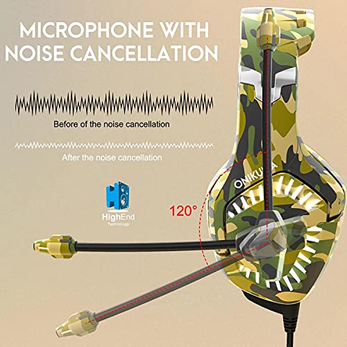ONIKUMA GAMING - سماعة العاب K1 Pro 3.5 ملم للموبايل والكمبيوتر وجهاز PS4 Xbox من اونيكيوما - بنقشة مموهة، فوق الأذن، متعدد الألوان، كيه 1 برو
