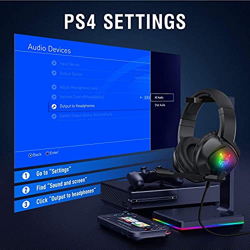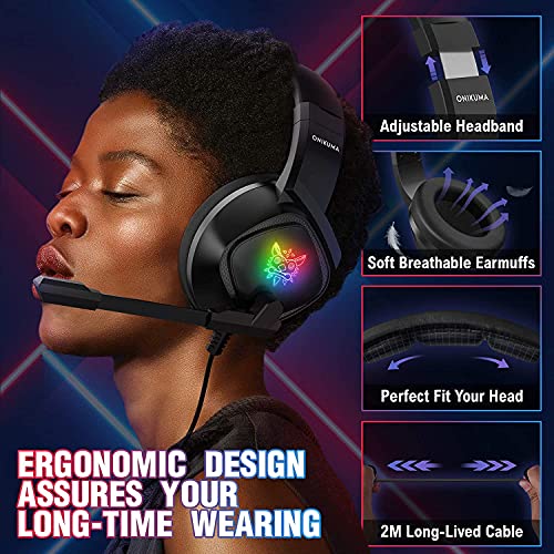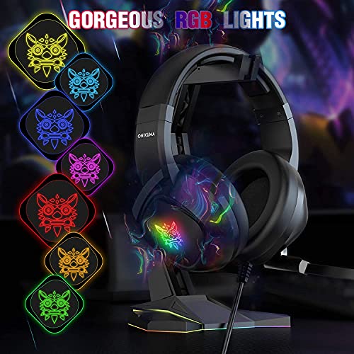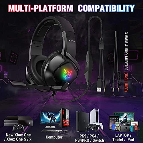 TIANHAI - سماعة داخل الأذن جيمنج K19 من اونيكوما، راس لاجهزة وPS5 , الصوت المحيطي 7.1 بخاصية الغاء الضوضاء مزودة بميكروفون واضاءة RGB LED , مع PS4 و واجهزة الكمبيوتر (غير شاملة المحولات)، سماعة رأس، أسود