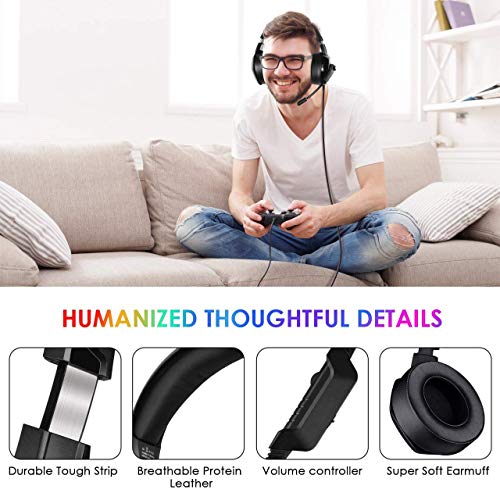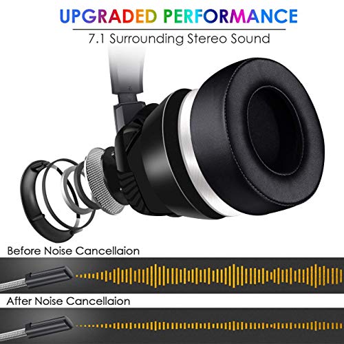 Onikuma - سماعة راس للالعاب من اونيكوما باضاءة الفضاء اللوني ار جي بي مع صوت محيطي ستريو ومايكروفون بخاصية الغاء الضوضاء، K6، لون اسود، فوق الاذن