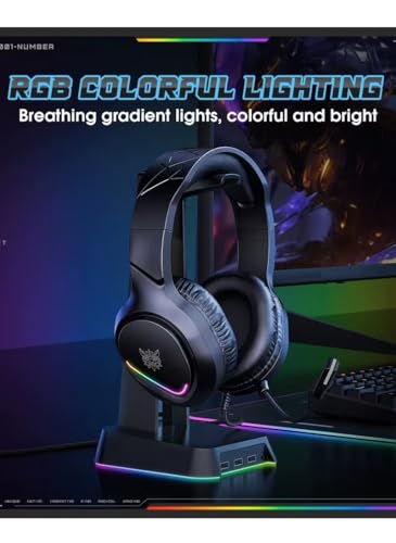 ONIKUMA GAMING - سماعات رأس سلكية X31 من اونيكوما، مع إضاءة ار جي بي ملونة ونظام صوت محيطي لألعاب الكمبيوتر والألعاب وجهاز Xbox