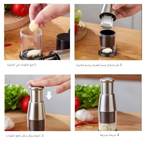 - مفرمة الثوم متعددة الاستخدامات، لا تقتصر على الثوم فقط. يمكنها التعامل مع مجموعة متنوعة من المكونات، بما في ذلك الفلفل والبصل. تصميمها متعدد الوظائف يجعلها أداة أساسية لأي مطبخ، مما يسمح لك بتقطيع وإعداد الأطعمة المختلفة بسهولة. سواءً كنت تصنع السلطة أو تطبخ سريعًا، فإن هذه المفرمة مجهزة لتلبية احتياجات الطبخ، مما يعزز تجربة الطهي.