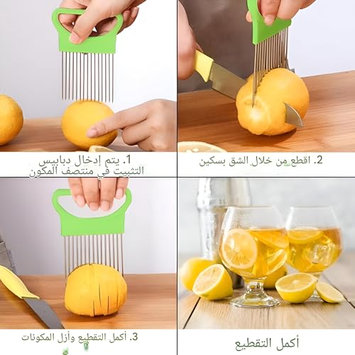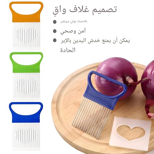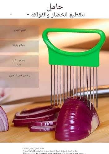 - [تصميم فريد] تأتي قطاعة البصل مع 15 شوكة من الستانلس ستيل ومقابض بلاستيكية ودبابيس حادة لمنع الانزلاق والتقطيع المتساوي والتقطيع السريع والمزيد من الأمان. تأتي قطاعة الطماطم أيضًا مع غطاء واقٍ شفاف لمنع إيذاء يديك!