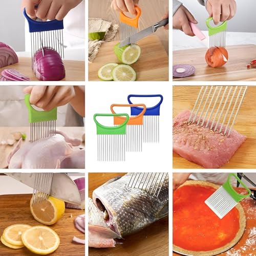 Generic - قطاعة بصل، أداة تقطيع فريدة من نوعها من الفولاذ المقاوم للصدأ لتقطيع البصل والطماطم وأكثر من ذلك، لتعزيز تجربة الطهي الخاصة بك (2 قطعة)