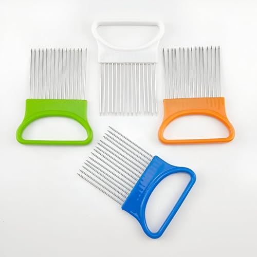 Generic - قطاعة بصل - أداة تقطيع من الفولاذ المقاوم للصدأ لتقطيع البصل والطماطم واكثر من ذلك، مما يعزز تجربة الطهي الخاصة بك (4 قطع)