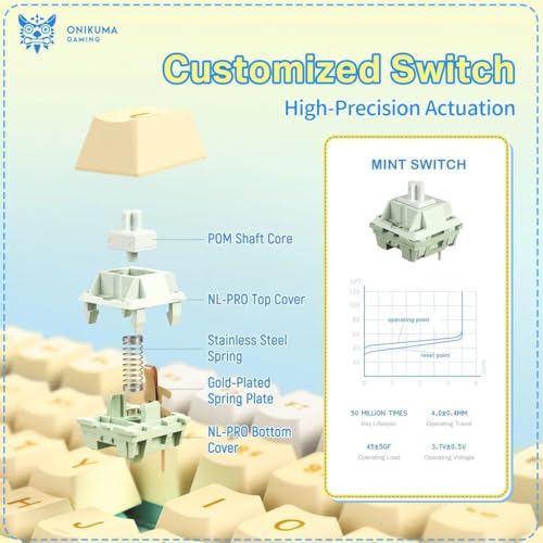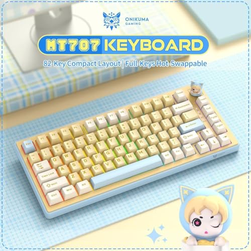 Generic - كيبورد العاب ميكانيكي ثلاثي الاوضاع MT707 باضاءة RGB من اونكوما، 81 مفتاح، مقبض تحكم مبتكر، حامل حشية، مفاتيح قابلة للتبديل السريع، لاسلكي 2.4 جيجاهرتز، بلوتوث وUSB-C