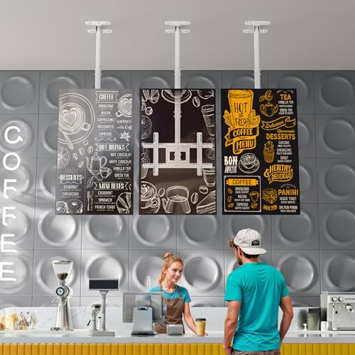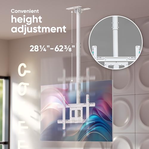 - حامل تلفزيون للسقف متدلي بلون أبيض| حامل التلفزيون المتدلي من السقف حل مناسب لتطوير تجربة مشاهدة التلفزيون في المنزل وفي الخارج كحامل تلفزيون خارجي وفناء للشرفة الخارجية. حامل التلفزيون المعلق من السقف بلون أبيض سيلبي احتياجات عملك في المطاعم والمتاجر ومراكز التسوق.