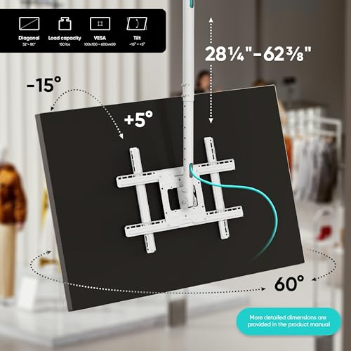 - حامل تلفزيون مثبت على السقف| يتيح لك كثير من خيارات التعديل لحوامل السقف للتلفزيون للعثور على أفضل زاوية المشاهدة| حامل تلفزيون قابل للسحب من السقف لأقصى قدر من الأمان للتلفزيون أو الشاشة| عند استخدام حامل التلفزيون الأبيض المعلق من السقف يمكنك إبقاء الشاشة بعيدًا عن الأطفال والحيوانات الأليفة.