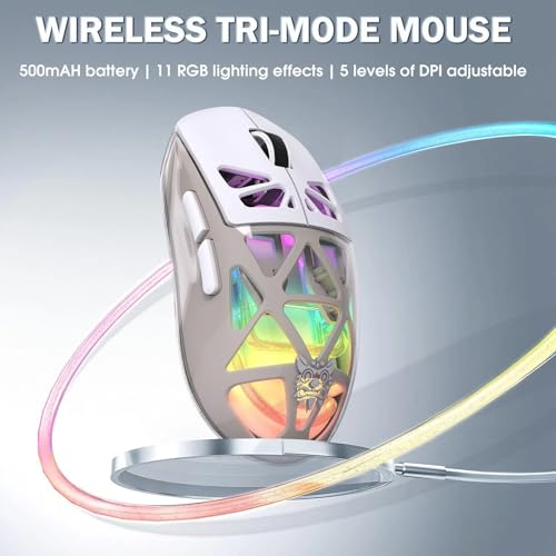 Generic - ماوس العاب لاسلكي CW930 RGB ثلاثي الاوضاع من اونكوما، بلوتوث 5.0، 2.4G لاسلكي وسلكي نوع C، 5 مستويات DPI قابلة للتعديل 800-4000، اضاءة RGB ديناميكية