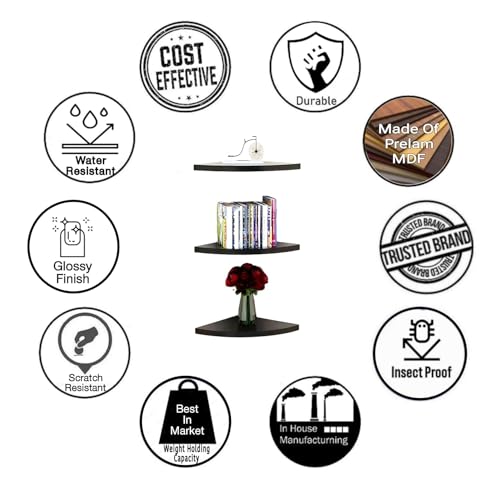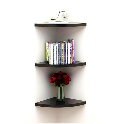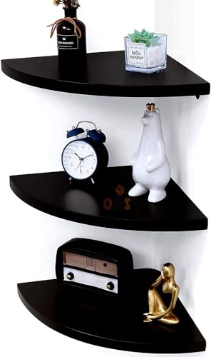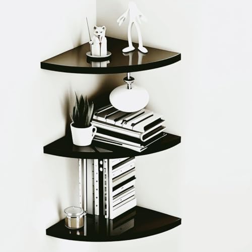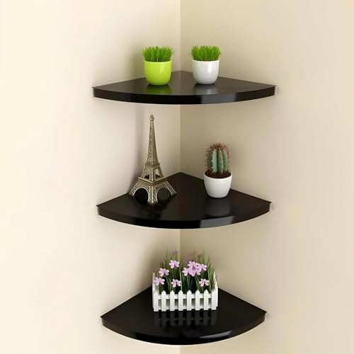 Online Decor Shoppee - مجموعة أرفف زاوية خشبية من 3 قطع لعرض ديكور المنزل وغرفة النوم ومناسبة كرف حائط زاوية للتخزين والتنظيم المنزلي من اونلاين ديكور شوبي، أسود