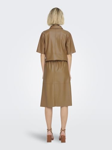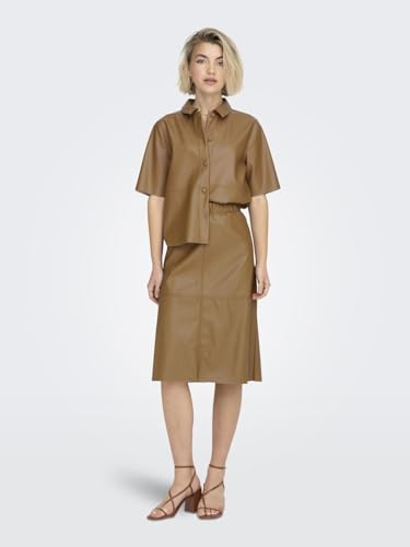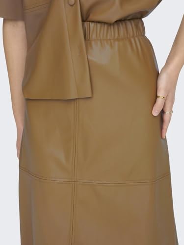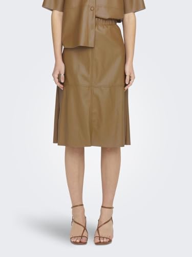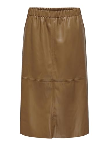 ONLY - اونلي تنورة فانا متوسطة الطول من الجلد الصناعي للنساء من جيه دي واي، مقاس M - جوز الهند المحمص