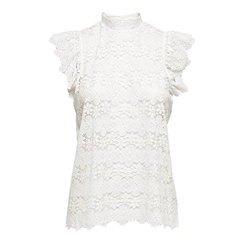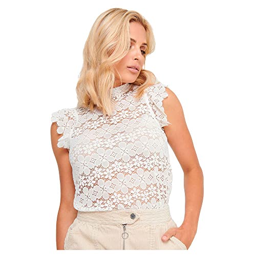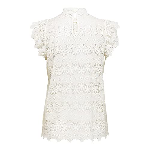 JDY - بلوزة دانتيل بلوند بأكمام قصيرة للنساء من أونلي، مقاس L - لون أسود