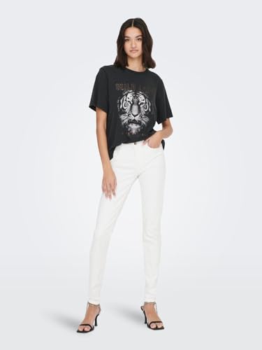 ONLY - بنطلون جينز ضيق بنمط سادة وبخصر متوسط الارتفاع للنساء من اونلي