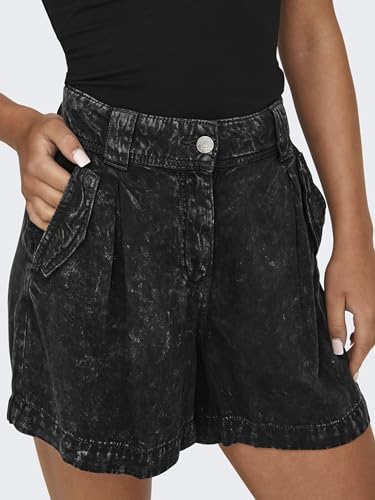 ONLY - شورت كينيا لايف اسيد للنساء من اونلي، لون أسود، مقاس لارج L