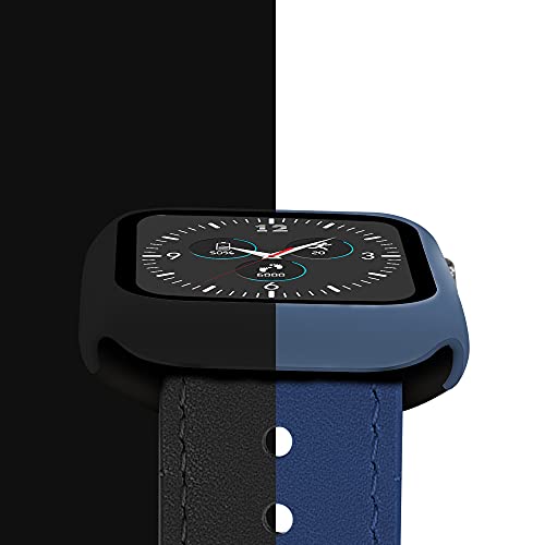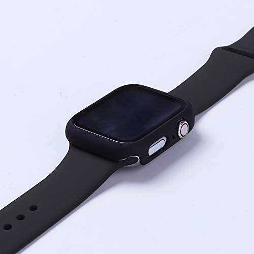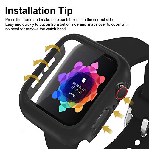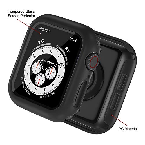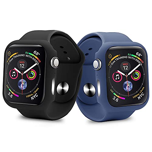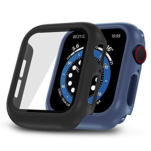 ONMROAD - جراب صلب متوافق مع ساعة ابل مقاس 40 ملم و44 شاشة حماية من الزجاج المقوى فائقة النحافة اتش دي لساعة اي ووتش سيريس 6 اس 5 4 تغطية كاملة حساسية للمس ازرق + اسود 44 قطعتين بولي كربونات