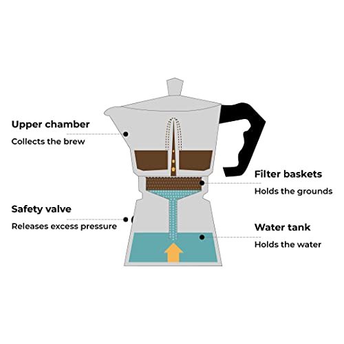 - [سهل الاستخدام] - املأ الوعاء السفلي بالماء، ثم أضف مسحوق القهوة أو الاسبريسو إلى الفلتر. ثم أضف مسحوق القهوة أو الإسبريسو إلى الفلتر للتسخين. بعد تخمير القهوة، يمكنك صب القهوة في فنجان القهوة. أضف الحليب والسكر وفقًا لأذواقك المختلفة، وأخيرًا يمكنك الاستمتاع بقهوة غنية وعطرية. سهلة التنظيف بعد الاستخدام، ما عليك سوى شطف المكونات بالماء الدافئ، ثم تجفيفها وتجميعها.