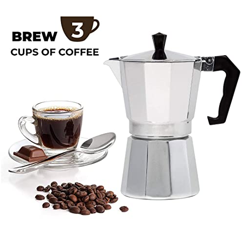 ONPOINT - ماكينة تحضير قهوة الاسبريسو من اون بوينت بتصميم ايطالي كلاسيكي تصفية مصنوعة الالومنيوم للغاز او الموقد الكهربائي||| فضي ||