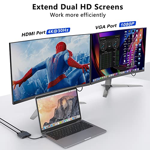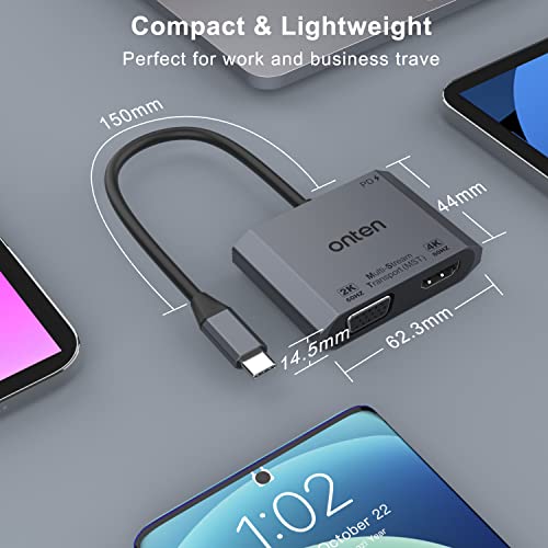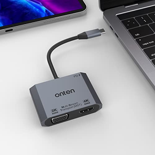 ONTEN - محول USB نوع سي الى HDMI وفي جي ايه من اونتن، محول في جي ايه و4K HDMI بدقة 1080P، محول ثاندربولت 3 USB نوع سي الى منافذ شاشة مزدوجة متوافق مع ثندربول 3-4، ماك بوك برو-اير، سيرفس برو، الخ , رمادي