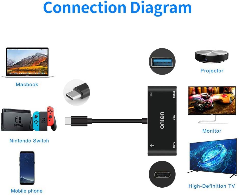 - 【توافق واسع】: محول أونتن USB نوع C إلى HDMI VGA متوافق مع ماك بوك برو 2019/2018 وآيباد برو 2018 وماك ميني 2018 وآيماك 2017 وسيرفيس بوك 2 وسيرفيس جو و XPS 15 و XPS 13 و XPS 12 ويوجا 920/ يوجا 910/ يوجا 900 وسبكتر إكس 360 مقاس 13 و15 بوصة وجالاكسي S8 وجالاكسي S9 وجالاكسي S10 و LG G 5 و LG G 8 و P20 وميت 10 وإتش تي سي 10 وأي جهاز USB نوع C آخر يدعم وضع DP ALT (مخرج العرض) أو ثندر بولت 3.