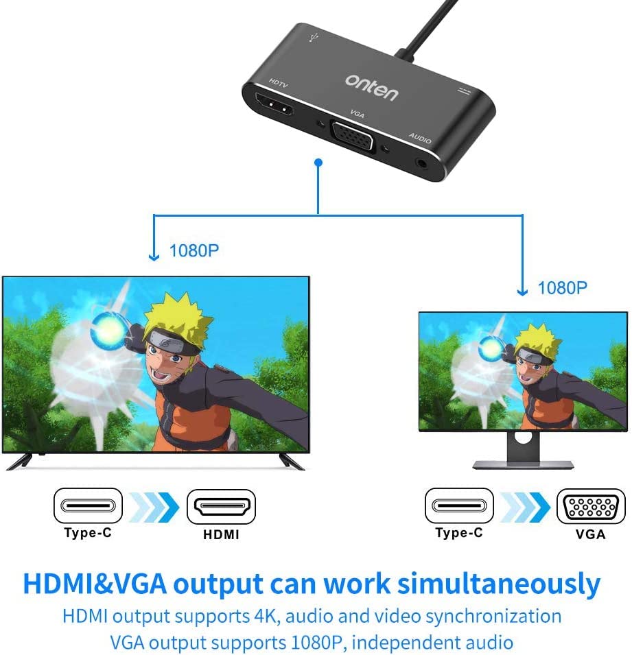 ONTEN - اون تن محول USB نوع C الى HDMI VGA (5 في 1)