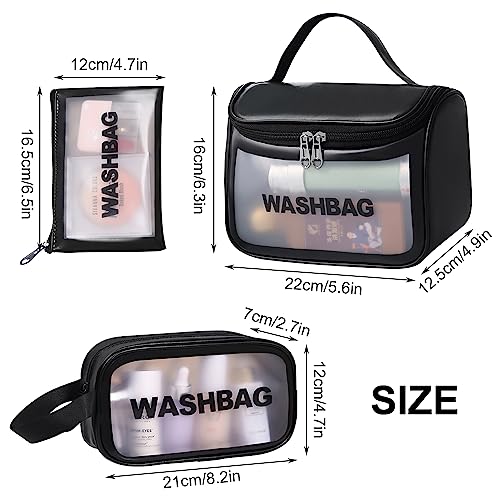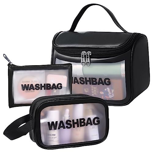 ONTHIS - 3 قطع من حقائب ادوات الزينة الشفافة بلاستيك بي في سي شنطة مكياج مقاومة للماء مستحضرات تجميل محمولة شفافة للسفر منظم للنساء والفتيات اسود حقيبة اون ذس .