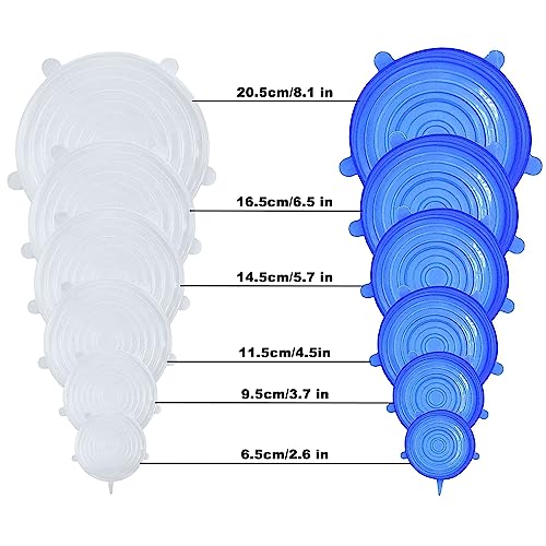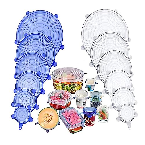 ONTHIS - أغطية سيليكون قابلة للتمدد من اونذيس، 12 قطعة بـ 6 مقاسات مختلفة، أغطية طعام من السيليكون قابلة للتوسيع للأطباق أو البولات، خالية من مادة البيسفينول أ، آمنة في غسالة الأطباق والميكروويف والفريزر