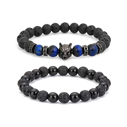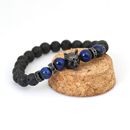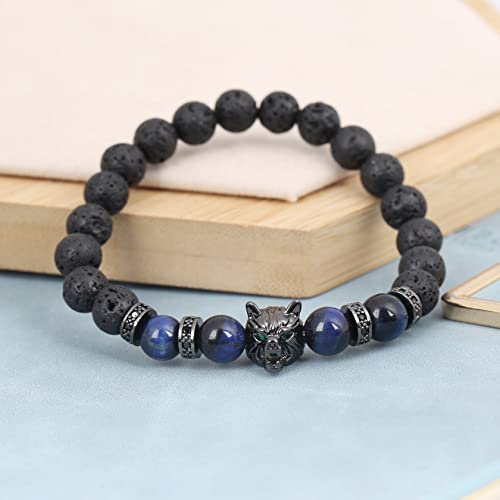 Generic - أساور بخرز حجر عين النمر من فايكنغ وولف هيد للرجال والنساء، سوار رجالي ذو حماية ثلاثية وقابل للتعديل، هدايا بالزيوت العطرية لتخفيف التوتر., العقيق