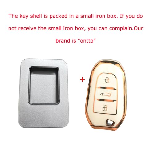 ontto - اونتو حافظة مفتاح سيارة تناسب بيجو 2008 3008 5008 308 508 لسيارة اوبل جراند لاند اكس موكا كورسا انسيجنيا حماية من السيليكون والبولي يوريثين الحراري لمفتاح فوب ذهبي بيج