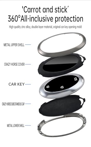 - المادة: جراب المفتاح هذا مصنوع من خليط الزنك المعدني (إطار معدني) والجلد (جلد البقر) ويكون وزن جراب المفتاح ضمن نطاق معقول ويوفر حماية مزدوجة لمفاتيحك ولا يؤثر موضع الزر على الحساسية عند الضغط على الزر.