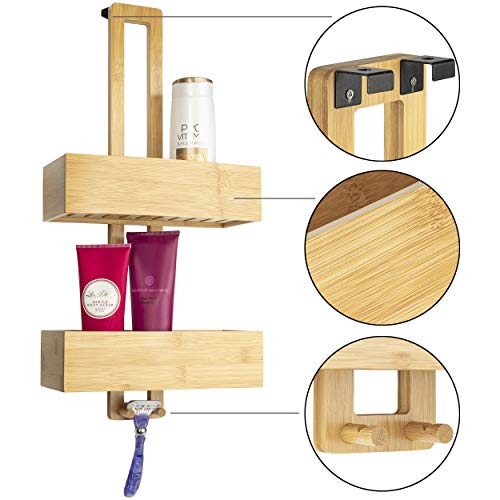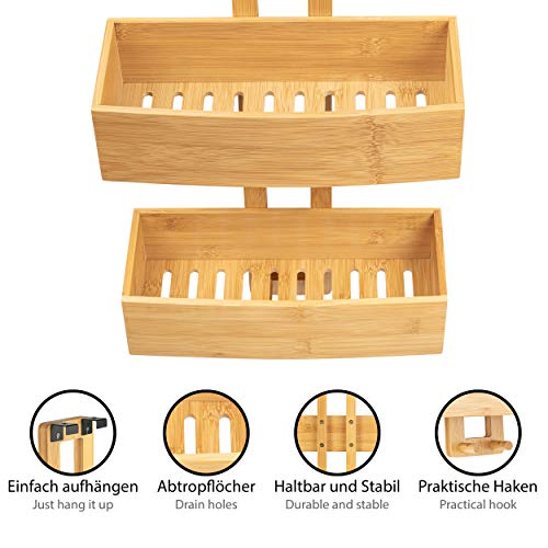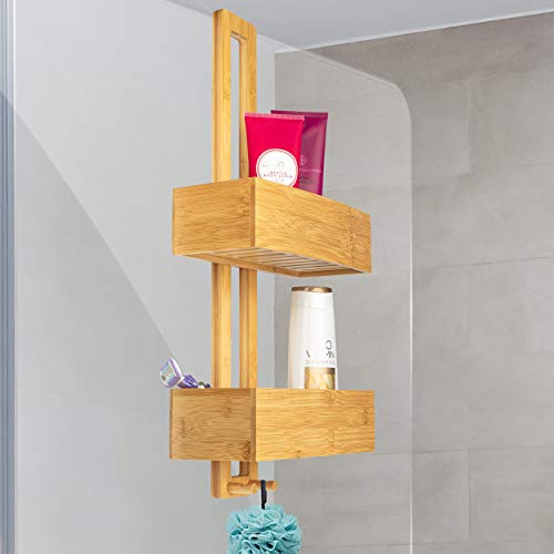ONVAYA - رف دش بدون ثقب من اونفايا® مصنوع الخيزران حمام للتعليق خشبي تعليق للاستحمام