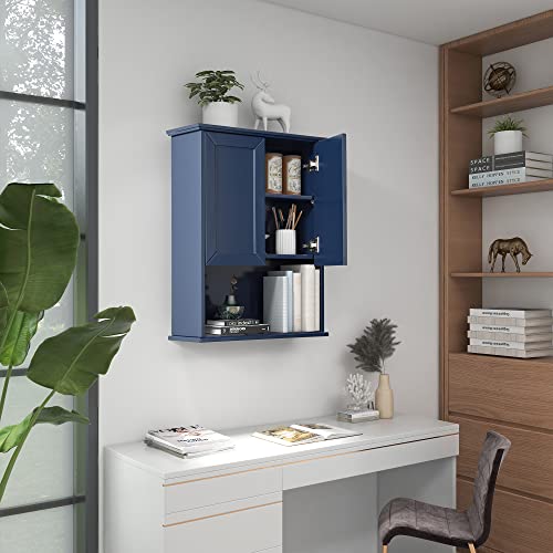 OONNEE - خزانة تخزين خشبية تثبت على الحائط فوق المرحاض من اوني، خزانة تخزين فوق المرحاض، خزانة حائط للحمام معلقة 23 × 29 انش مع بابين ورف قابل للتعديل، مفصلات ناعمة، خشب مُصنع، أزرق