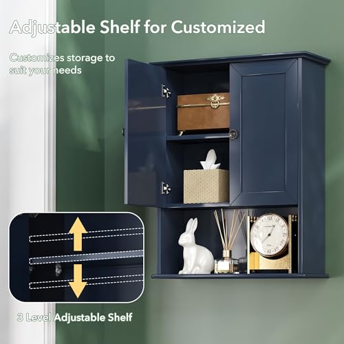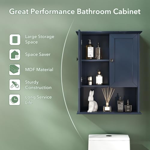 - خزانة تخزين كبيرة متعددة الأغراض مثبتة على الحائط: تحتوي خزانة الحمام هذه من اوني بعرض 24 انش × ارتفاع 30 انش × عمق 9 انش على مساحة تخزين مفتوحة كبيرة في الأسفل لسهولة الوصول أو العرض ومساحة تخزين كبيرة مع رف قابل للتعديل خلف البابين. يمكن تعديل رف خزائن التخزين الجدارية الزرقاء إلى 3 ارتفاعات مختلفة لتوفير مساحة تخزين قابلة للتخصيص. خزانة تخزين رائعة موفرة للمساحة فوق المرحاض، خزائن مثالية للحمام أو المطبخ أو غرفة النوم أو غرفة المعيشة أو غرفة الطعام