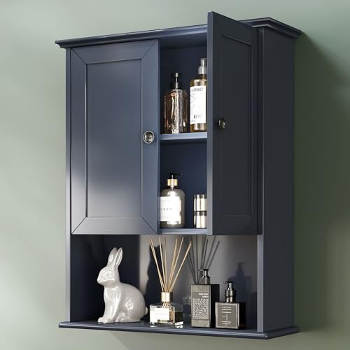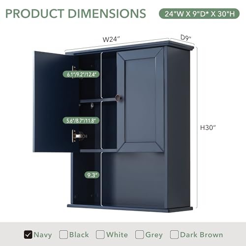 OONNEE - خزانة ادوية خشبية تثبت على الحائط من اوني، خزانة تخزين فوق المرحاض مقاس 24 × 30 انش، خزانة حائط للحمام مع بابين ورف قابل للتعديل، مفصلات ناعمة، مقبض معدني