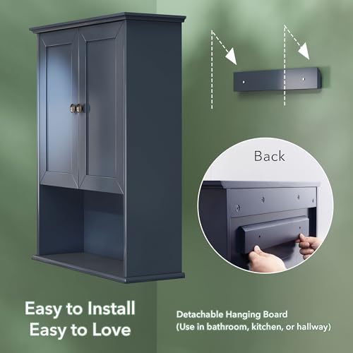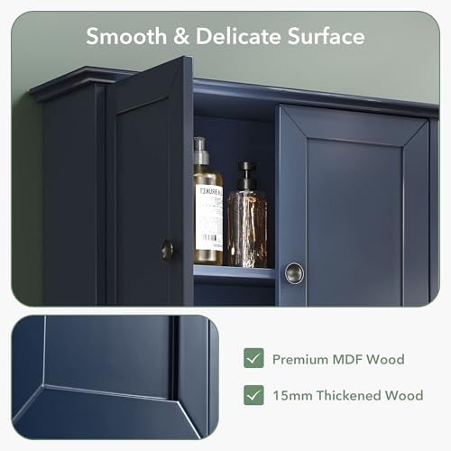 - خزانة حائط أنيقة بمقبض معدني كلاسيكي: تضيف مقابض الأبواب المعدنية السوداء الكلاسيكية الأناقة إلى خزانة التخزين المثبتة على الحائط للحمام باللون الأزرق. تتميز اللمسة النهائية المطلية لخزائن الحمام بنوع من ملمس البشرة، والتي تختلف عن خزانات العلامات التجارية الأخرى التي تتميز بلمسة نهائية غير متساوية وسهلة السقوط. خزانة الحمام المثبتة على الحائط تكملها خطوط أنيقة للحصول على مظهر نظيف ولائق تجعل تحديث حمامك أمرًا سهلاً. تمتزج جيدًا مع ديكور الحائط الخاص بك في أي غرفة