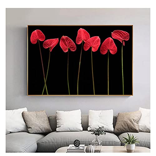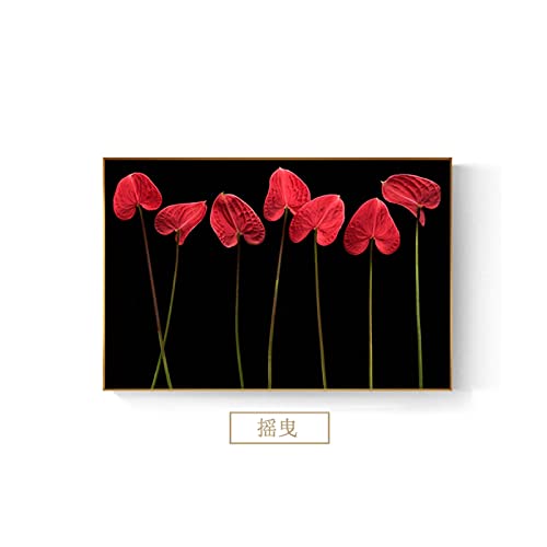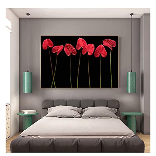 OPBGM - لوحة قماشية تجريدية بتصميم زهرة حمراء في الظلام، بوستر عصري اسود مطبوع بصورة عصرية لغرفة المعيشة - 20 × 28 انش بدون اطار