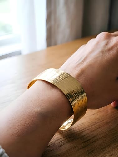 Generic - سوار مفتوح - سوار عريض مستوحى من البانك مع نسيج غير متماثل، سوار معدني مرن، مثالي للارتداء اليومي أو إضافة لمسة إلى الملابس الكاجوال.