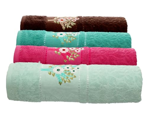 Egyptian Textile - فوط من القطن بنسبة 100%، مضادة للوبر والانكماش من أوبرا، 4 قطع مقاس 60 سم × 1.2 م، متعددة الألوان