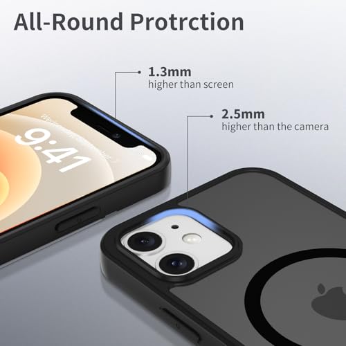 - [متوافق مع الملحقات المغناطيسية]: مصمم خصيصًا لحافظة ابل ايفون 12/12 برو، مع حلقة مغناطيسية مدمجة قوية، متوافقة مع الشاحن المغناطيسي لشحن لاسلكي أسرع. كما يسمح لك باستخدام ملحقات ماج سيف بسهولة.